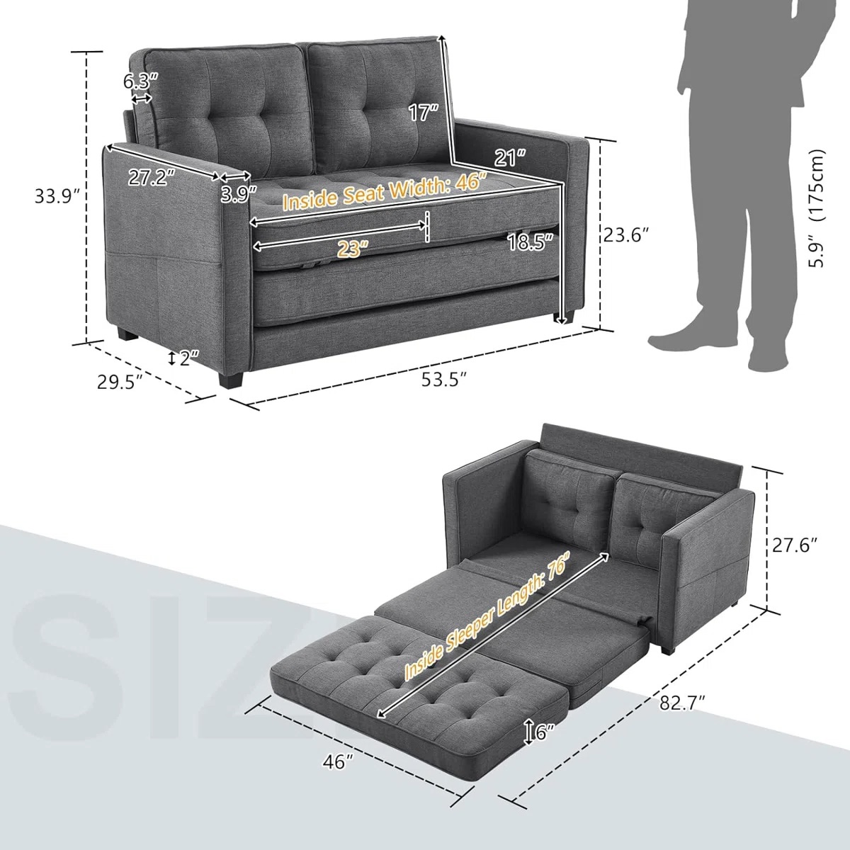 New Open box for inspection Color Grey Learco Size 53.54'' Upholstered Sleeper Sofa