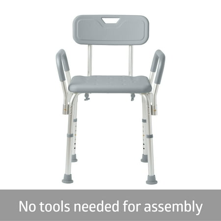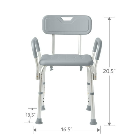 Color Grey Medline Shower Aluminum Chair with Back and Padded Arms, Supports up to 350 lbs. Gray