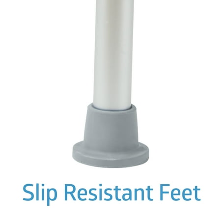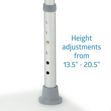 New Open box for inspection Color Grey Sturdy, durable aluminum frame with textured polyethylene seat, armrests and backrest for comfortable bathing and reduced risk of falls Bath chair features easy custom height adjustability | Adjusts in 1" increments from 16" – 21" | Seat dimensions: 13.5" x 16" Wide, skid-resistant feet hold chair securely to the tub or shower floor Lightweight, rust-resistant tubing and easy-to-clean seat, arm and backrests Tool-free assembly | Contains no natural rubber latex |Weighs 7 lbs and supports up to 350 lbs