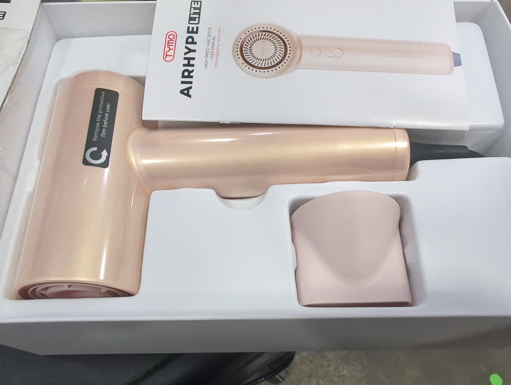 Color Pink The AIRHYPE LITE High Speed Hair Dryer is a new generation of hair dryer that combines exceptional power and performance. The exquisite and lightweight device is equipped with a powerful BLDC motor (110,000 rpm) with a high-speed airflow (23m/s), making it superior to other high-speed hair dryers. It features 4 precise temperature options (room temp, 140℉, 180℉, 210℉), 3 air flow speed settings (low, medium, high), and cool shot to create long-lasting styles for every hair type. The temperature and speed are shown on a dynamic indicator display. The iONIC technology releases over 100 million negative ions for shiny, smooth, and healthy hair. It has a slim and lightweight design, making it ideal for home or travel. The TYMO AIRHYPE LITE includes a magnetic concentrator attachment nozzle. Get ready to dazzle with your sleek, runway-ready hair. Step into the future of hair styling with the TYMO AIRHYPE LITE High-Speed Hair Dryer. The TYMO champagne pink is a Target exclusive color for the AIRHYPE LITE.