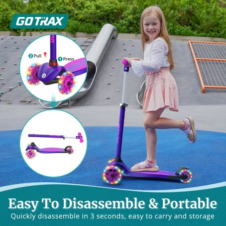 Color purple GOTRAX KS1 Kids Kick Scooter, Toddler Scooter 3 Wheel with LED Lighted, 3 Adjustable Handlebars, Suitable for Boys and Girls Ages 2~8 Children and Max Load 100 lbs, Purple