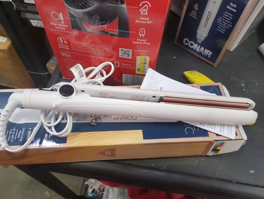 Color rose gold What it DoesDouble Ceramic technology provides a higher ceramic content for even heat that’s gentle on hair, with anti-frizz control for silky smooth styles. Extra-long plates and high 410°F heat let you create smooth, straight styles fast. Five heat settings offer the right temperature for your hair!How to Use Plug in the iron and press the ON/OFF button. The iron will heat up to the default temperature of 338°F, adjust to your desired heat setting. Once the red indicator light is solid, the iron has reached the desired temperature. Section dry hair into 1.5" wide sections. Open the iron and place the hair section between the two hot plates, close to the scalp. Trap hair between the plates by firmly squeezing the handles together. While maintaining tension, slowly pull the iron down the hair section towards the ends. At the ends, release the pressure on the handles and allow the hair to slide out. Repeat on additional sections until desired look is achieved. To add volume and shape, secure ends between the plates and wrap hair around the outer housing.# of Heat Settings: 5Included: 1 Thermal Mat(s)Features: Ceramic CoatingConcerns: FrizzVoltage (volts): 120vWattage (watts): 45wBarrel Size: 1 InchPlate Size: 1 InchCord Length (ft.): 5 FtMaximum Temp (f): 410 Degrees FBase Material: 100% PlasticCare: Wipe CleanCountry of Origin: Imported