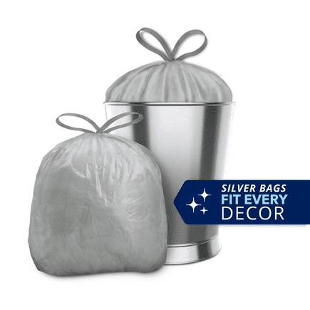 4-Gallon Trash Bags: Includes 200-count small garbage bags in Simply Clean scent. Microban® Protection: Antimicrobial product protection. Neutralizes odor-causing bacteria on the bag. Drawstring Closure: Cinch and toss for quick, easy removal. Colored Plastic Bags: Clean white liners complement any décor. Simply Clean Scented Trash Bags: Crisp, fresh fragrance keeps your home inviting. Keep it simple. Lightweight Waste Solution: Ideal for tissues, shredded paper, and other non-sharp trash. Bulk Value Pack: 200-count for long-lasting supply and fewer trips to the store. Perfect for Bathrooms: Fits small bathroom trash cans and bedroom bins. Made in the USA: Proudly manufactured for quality you can trust. Sustainability Commitment: Proudly made by founding members of the Alliance to End Plastic Waste.