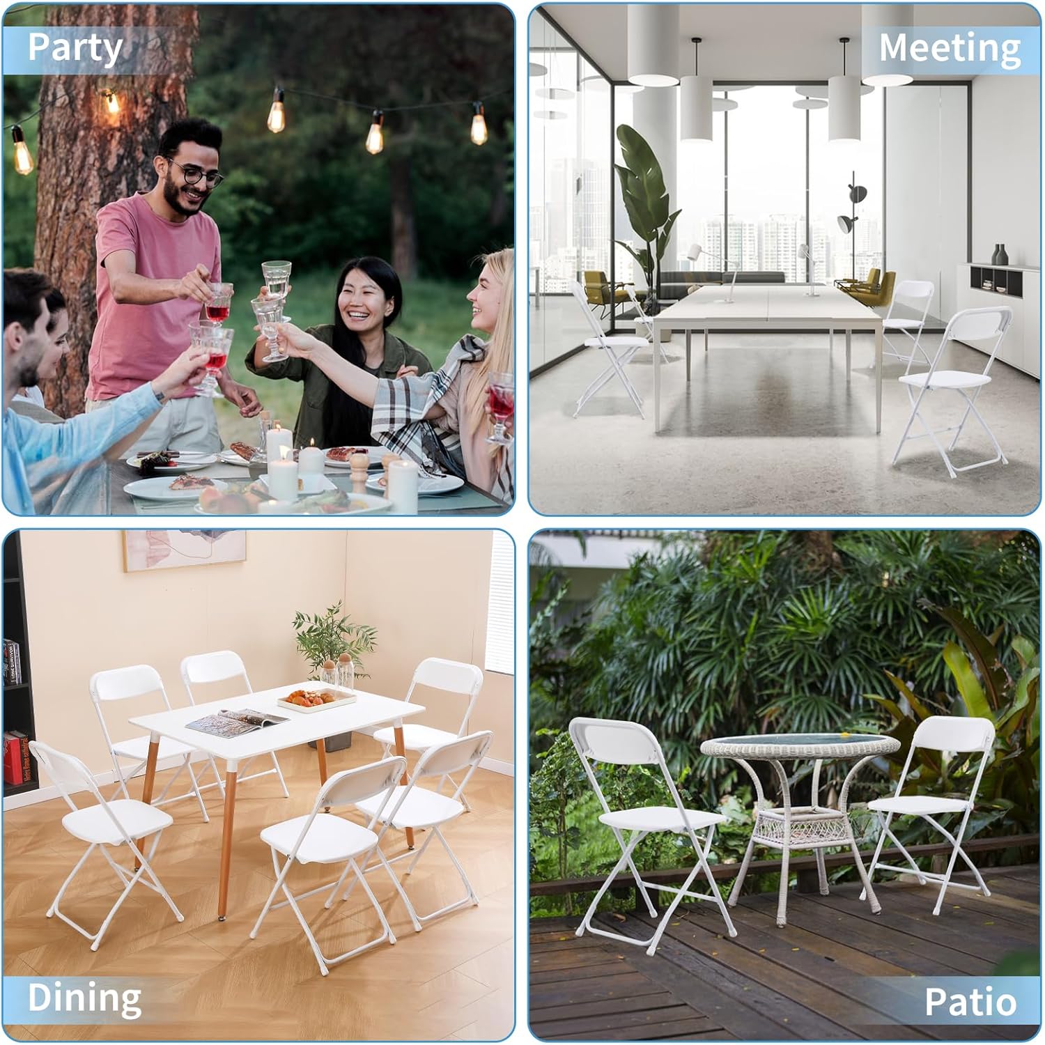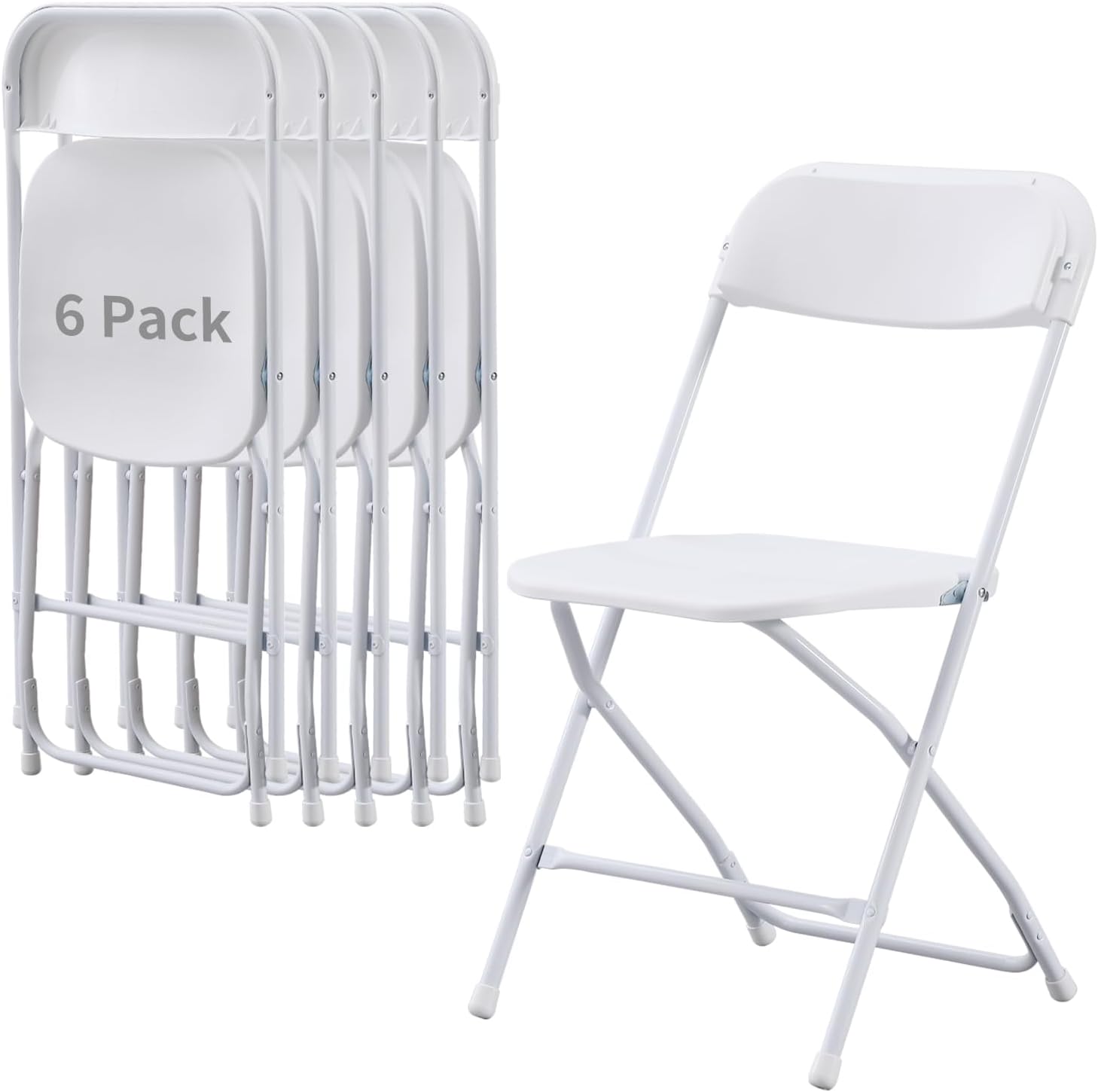 Color White 6 Pack Plastic Folding Chair Metal Frame Foldable Chairs Commercial Stackable Guest Chairs for Indoor and Outdoor-White