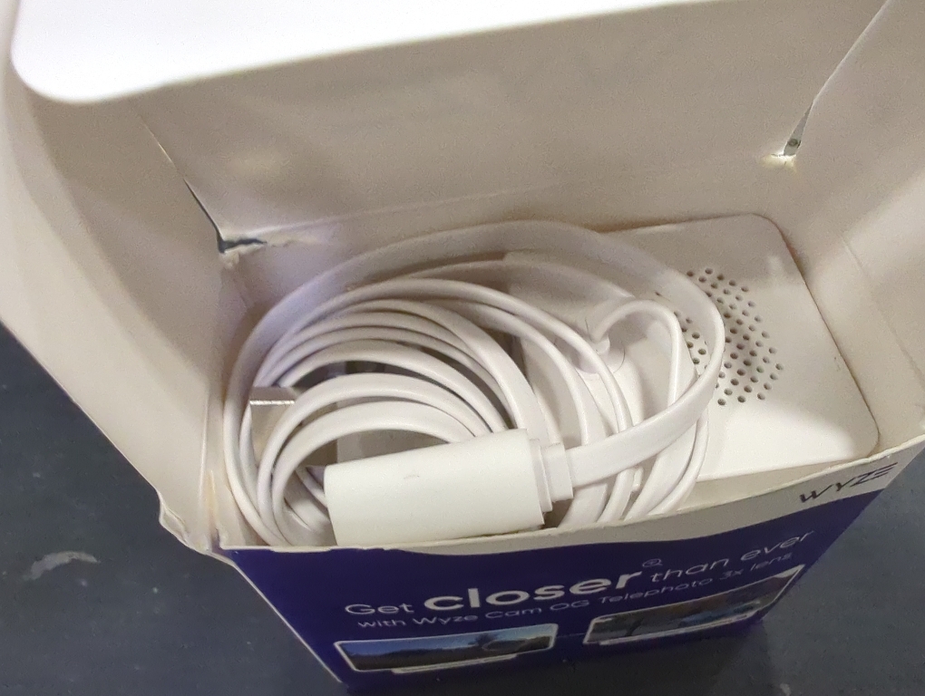 New Open box for inspection Color White Introducing WYZE Cam OG Telephoto. The industry shattering WYZE Cam that catapulted the company into 6 million households today, is back and better than ever. We've upgraded everything that matters most. Load live HD video 50% faster than our best-selling WYZE Cam v3 so you never miss a moment. See in full color, even in the darkest of nights with our stunning clear 1080p Color Night Vision. Speak and hear with enhanced clarity through an upgraded speaker and microphone system. Confidently mount outdoors in rain or snow with a hardened IP65 weatherproof rating. Connect and mount a second WYZE Cam OG on top of 1 another to see near and far with WYZE Cam OG (sold separately) and view them from 1 screen in the WYZE app with picture-in-picture (PIP), just tap to pop in and out of either camera. Included with WYZE Cam OG Telephoto is a 360° non-slip tabletop stand with a quick-connect wall mounting system that takes less than 60 seconds to complete.. Cable Connection: USB,WiFi. Camera Connection: Wired Cameras. Camera Product Type: Standard. Camera Resolution: 1080p. Camera Technology: IP. Camera Type: Bullet. Color Family: White. Color/Finish: White. Connectivity: Wireless (Wireless Network Transmission). Features: 2-Way Audio,2-Way Intercom Camera,Built-in Microphone,Built-in Speaker,Ceiling Mountable,Day/Night Mode,Indicator Light,Motion Sensor,Night Vision,Remote Access,Smartphone Compatible,Weather Resistant,Zoom. Field of View: 120 Degrees. IP Rating: Weather Resistant. Image Sensor Type: CMOS. Included: Cables,Mounting Hardware,Power Cord. Indoor/Outdoor: Indoor,Outdoor. Microphone: Two-Way Audio. Night Vision Distance (ft.): 30. Night Vision Range (ft.): 30 ft. Pack Size: 1. Power Options: Plug-in. Power Source: Plug-in. Power Source: Plug-In. Product Weight (lb.): 0.48 lb. Resolution: 2MP (1080p). Returnable: 90-Day. Rotation Direction: Fixed. Storage Capability: Cloud,SD Card. Video Signal: HD. Voltage (V): 5 V. Certifications and Listings: UL Certified. Product Depth (in.): 3 in. Product Height (in.): 2.1 in. Product Width (in.): 3.6 in. Features: Motion Sensor. Features: Night Vision. Features: Weather Resistant. Features: Smartphone Compatible. Pack Size: 1. Features: Remote Access. Features: 2-Way Audio. Connectivity: Wireless (Wireless Network Transmission)