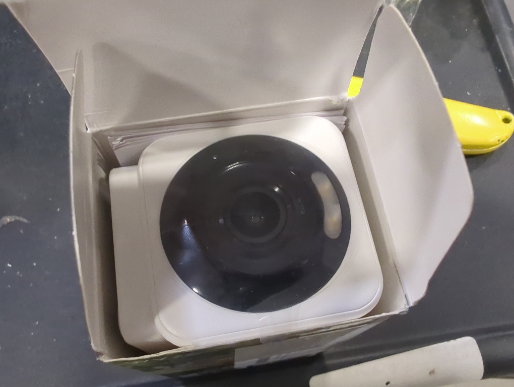 New Open box for inspection Color White The best just got better with Wyze Cam v4. Clearer video with 2.5K QHD resolution and Color Night Vision. Enhanced clarity day or night with wide dynamic range. Improved audio for louder and clearer two-way talk. More security features like an integrated, motion-activated spotlight. Place it indoor or outdoor with IP65 weather resistance. Capture every moment with 24/7 recording with MicroSD card. Plus, get advanced features like facial recognition and seamless integrations with your favorite smart assistants. All that at an affordable price means Wyze Cam v4 is the best "never wonder again" smart security camera ever made.. New Wyze Cam v4 indoor/outdoor smart security camera 2.5k QHD res. Fast and easy bluetooth enabled setup, no QR codes required. Brighten the night w/ 2k color night vision, built in spotlight. Clear 2.5K QHD Resolution - Capture images and video in greater detail with Quad High Definition clarity.. Security with Color Night Vision - See important details in color, even at night.. Enhanced Two-Way Talk - Talk to anyone easily with a more powerful amplifier and updated mic for clearer camera audio.. 24/7 Local Recording with MicroSD Card* - Don't miss a thing with continuous local recording to a microSD card up to 256 GB. No subscription required.. Place it Indoor/Outdoor - Wyze Cam v4 operates in any weather due to its IP65 weather-resistant rating.. Integrated Spotlight Siren - Deter intruders or light your way home with a motion-activated spotlight. Activate the loud siren for extra "get outta here" power.. Screw Free Mounting - Put away the power tools. Mounting is easy with a magnetic base and metal mounting plate.. Easy Setup with Bluetooth - No need to scan QR codes. Enjoy hassle-free setup with Bluetooth, which also presents opportunities to work with other smart home devices.. Automate with Facial Recognition - Use Wyze Rules to customize personal routines and automate your home.. Wi-Fi 6 Connection Support - Maintain a stronger and more reliable connection at greater distances. Wi-Fi 6 router required.. Alexa, Google Assistant, IFTTT Support - Convenience and customization at your fingertips with integrations like Amazon Alexa, Google Assistant, IFTTT, and Wyze Rules.. *MicroSD cards sold separately.. Click here for more information on Electronic Recycling Programs. Cable Connection: USB,WiFi. Camera Connection: Wired Cameras. Camera Product Type: Standard. Camera Resolution: 2K. Camera Technology: IP. Camera Type: Bullet. Color Family: White. Color/Finish: White. Connectivity: Wireless (Wireless Network Transmission). Features: 2-Way Intercom Camera,Audio Alert/Siren,Audio Recording,Built-in Speaker,Ceiling Mountable,Day/Night Mode,Microphone,Motion Sensor,Night Vision,Visual Alert,Wall Mountable,Weather Resistant. Field of View: 130 Degrees. IP Rating: Weather Resistant. Image Sensor Type: CMOS. Included: Cables,Mounting Hardware,Power Cord. Indoor/Outdoor: Indoor,Outdoor. Microphone: Two-Way Audio. Night Vision Distance (ft.): 30. Night Vision Range (ft.): 30 ft. Pack Size: 1. Power Options: Plug-in,USB Connector. Power Source: Plug-in. Power Source: Plug-In. Product Weight (lb.): .43 lb. Resolution: 4MP (1440p). Rotation Direction: Fixed. Smart Device Enabled: Enabled. Storage Capability: Cloud,SD Card. Video Signal: HD. Voltage (V): 5 V. Certifications and Listings: UL Certified. Product Depth (in.): 1.97 in. Product Height (in.): 2.2 in. Product Width (in.): 1.97 in