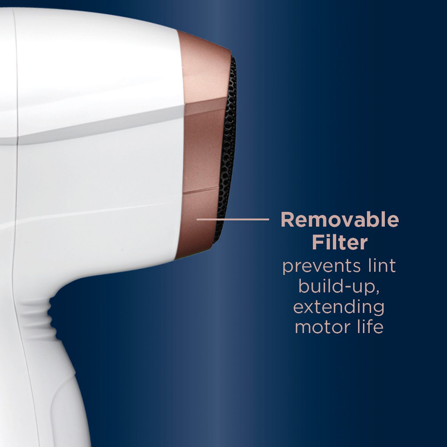 - Removable filter prevents lint buildup, extending motor life