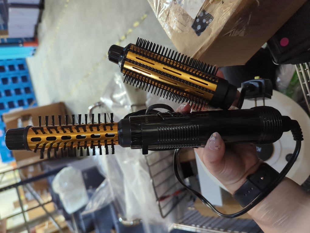 2-In-1 Styling Brush: This 300-watt brush includes interchangeable curling iron and brush attachments with 0.5" aluminum barrels for maximum heat transfer: a 1.5" curling brush and 1" aluminum bristle brush.