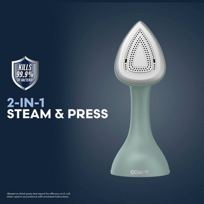 Go from wrinkled to ready in record time with the Conair® ExtremeSteam® Steam & Press 2-in-1 Iron & Steamer. Deep-penetrating steam from the iron-shaped soleplate eliminates the most stubborn wrinkles and provides precision touch-ups with targeted heat, so it's quick and easy to refresh your entire wardrobe. Use it vertically or horizontally and look your best with the totally versatile Steam & Press 2-in-1 Iron & Steamer! This Iron & Steamer, with deep-penetrating steam, quickly refreshes your entire wardrobe killing 99.9% of bacteria (based on third-party test report for efficacy on E. coli when used in accordance with enclosed instructions) while the targeted heat of the iron-shaped soleplate eliminates the most stubborn wrinkles and provides precision touch-ups. Use the 2-in-1 Iron & Steamer to steam, press, and freshen all types of fabrics. Easily remove the deepest wrinkles with Advanced Heat Technology: super-high heat and a continuous flow of turbocharged steam that leave your garments looking professionally cared for. The lightweight and compact tool is perfect for home and travel — press garments faster and more efficiently than with a traditional iron. Looking your best is easy with the totally convenient, time-saving Steam & Press 2-in-1 Iron & Steamer!