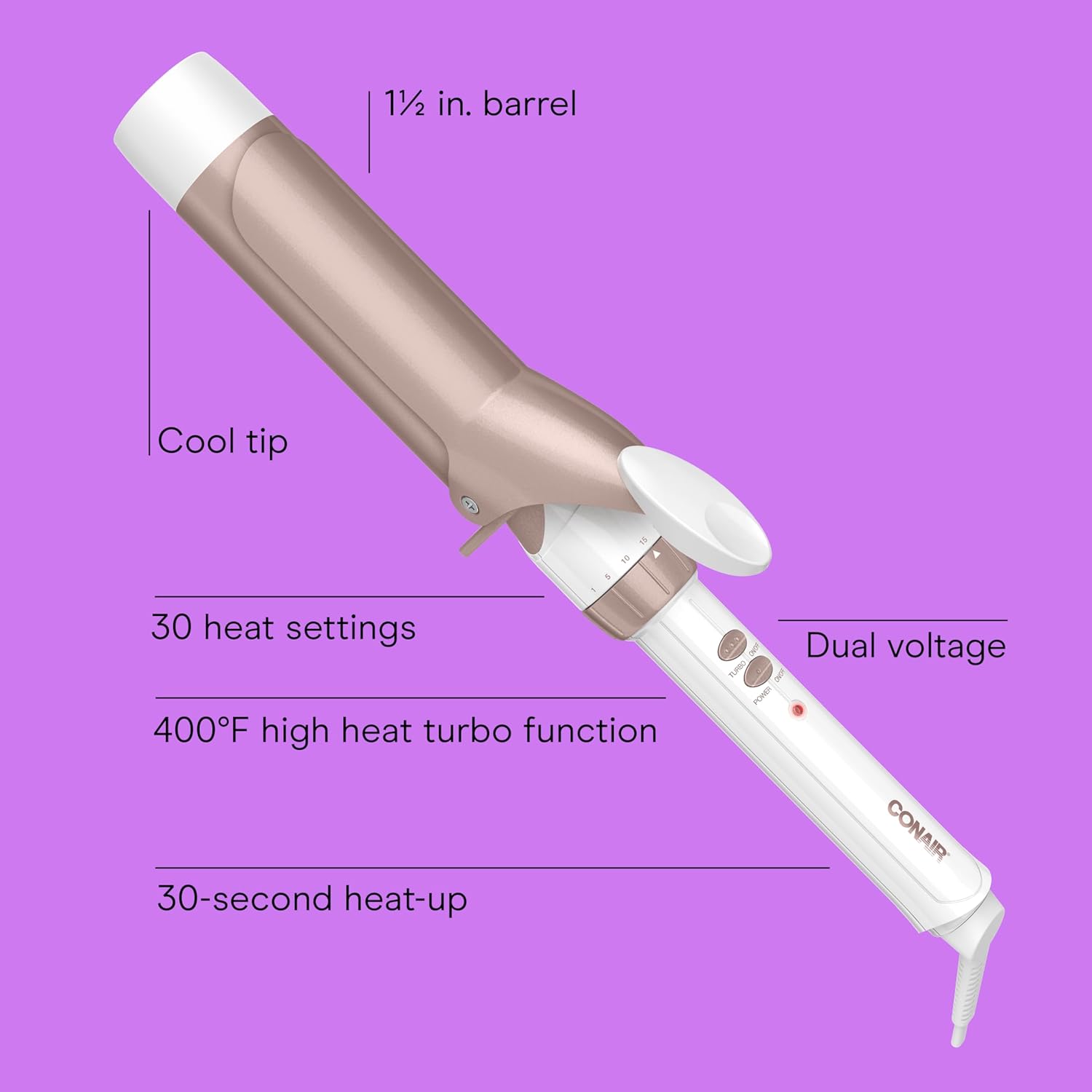 3. Conair Double Ceramic 1-1/2 Inch Curling Iron, 1.5-Inch Barrel Creates Soft Waves and Curls, Hair Curler for Use on Medium and Long Hair, White