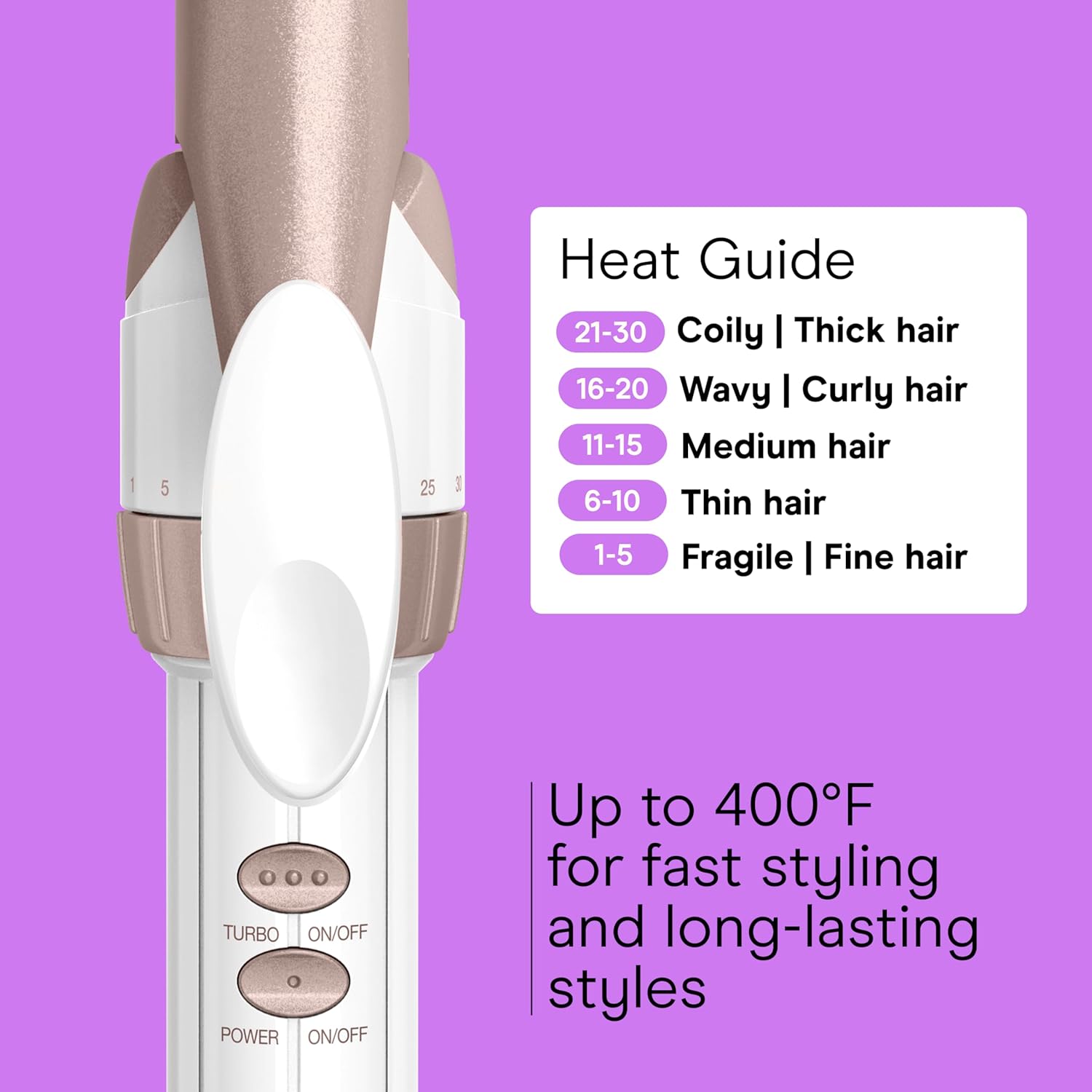 HEAT YOUR WAY: Take control of every curl. With 30 heat settings and a Turbo Heat boost, this curling iron puts the power in your hand to create everything from soft spirals to tight curls with ease.