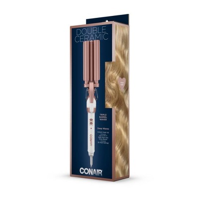 Make deep, gorgeous waves with the Conair Double Ceramic Triple Barrel Hair Waver. The triple barrel creates continuous, uniform waves, while the double ceramic technology delivers even heat for fast styling and long-lasting results. This triple barrel waver has outer barrels of 5/8” and an inner barrel at 1/2" to create gorgeous, continuous waves. The double ceramic technology delivers even heat for fast styling and long-lasting results with less frizz. Featuring 30 heat settings for every hair type and a Turbo Boost that adds up to a 27° degrees F burst of heat for difficult to style spots. Create gorgeous continuous waves to switch up your everyday style!