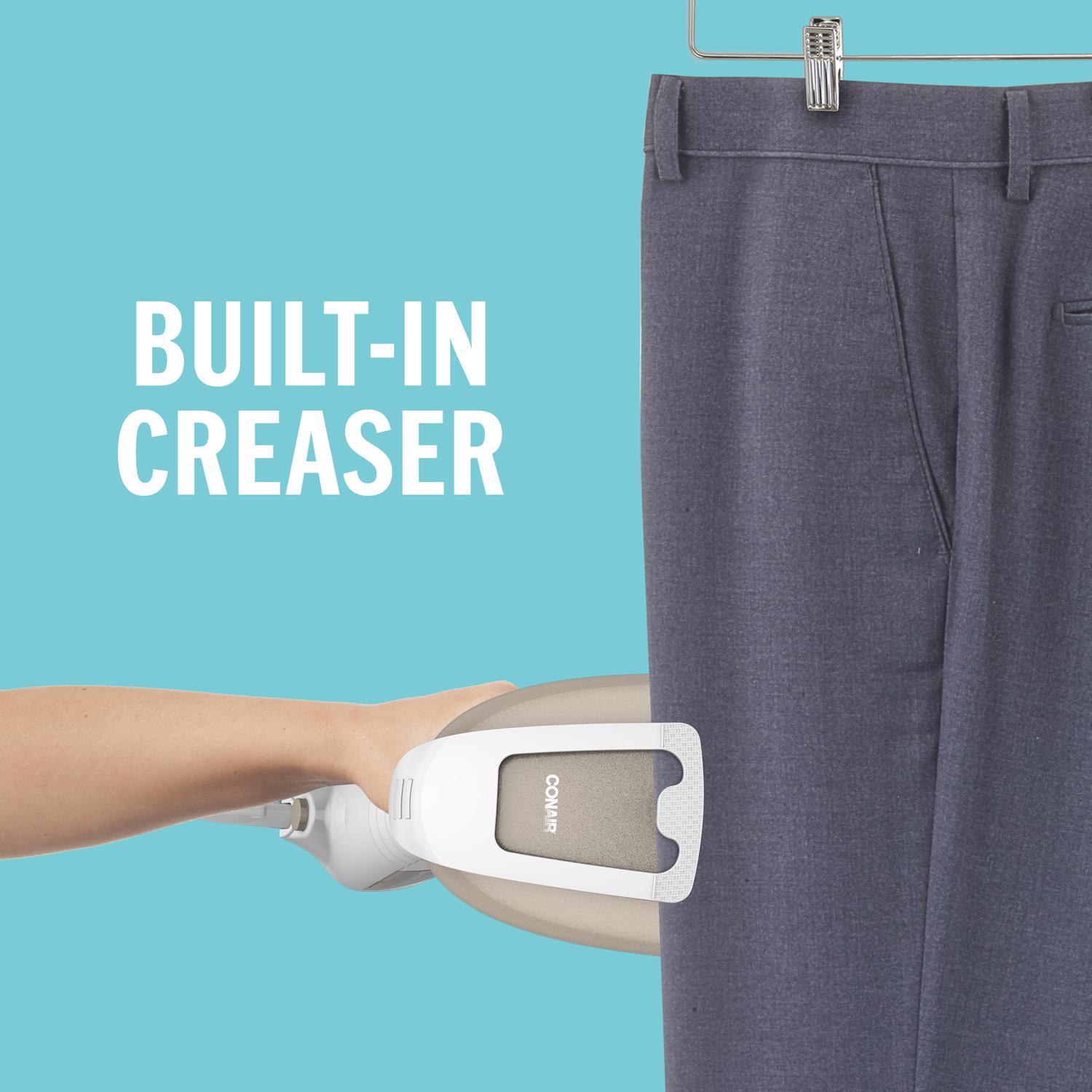 It's fast and easy to keep clothes wrinkle free and home fabrics fresh with the Conair Turbo ExtremeSteam handheld fabric steamer. With 5 steam settings for every kind of fabric and dual slotted ceramic coated aluminum sole plate that releases more steam, smoothing is faster and more effective. Hit the Turbo setting for supercharged steam and add on the 3-in-1 attachment to take on tough wrinkles and odors even on delicate fabrics with total ease. Press like a pro with Conair Turbo ExtremeSteam.