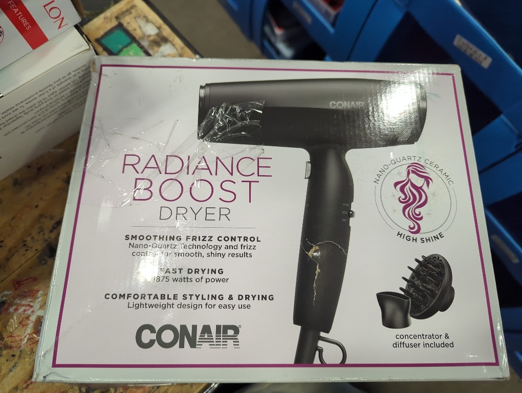 STYLING POWER ON THE GO: The Conair Radiance Boost Hair Dryer features nano-quartz and ionic technologies for megawatt shine, frizz control, and smooth hair, while ceramic technology provides gentle heat for less damage.