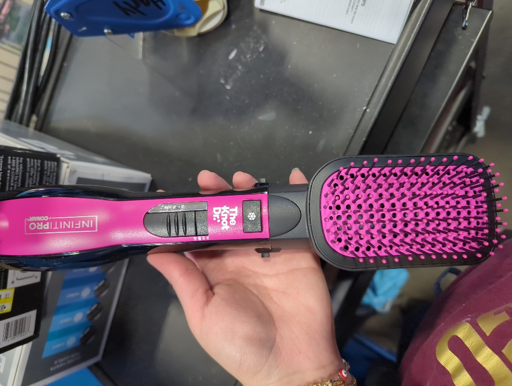 The all-in-one smoothing dryer brush from infinitipro by conair with the knot dr.® was created to perform the perfect knotectomy™—aka painless knot removal—every time you use it. While other styling brushes may pull, tug, and even tear large clumps of hair, this innovative brush renders the removal of knots painless. In fact, the epoxy tips of the flexalite™ bristles gently massage the scalp as they detangle for a soothing effect. Meanwhile, ionic technology eliminates frizz, flyaways, and static while adding high shine. To boost volume, brush close to the roots with the bristles pointing upward and pull the hair taut against the silicone paddle so the bristles penetrate through the hair. For maximum volume, brush with your head upside down.# of Heat Settings: 3Features: Temperature ControlConcerns: VolumizingVoltage (volts): 120vWattage (watts): 1000wCord Length (ft.): 6 FtBase Material: 100% PlasticCare: Wipe CleanCountry of Origin: Imported