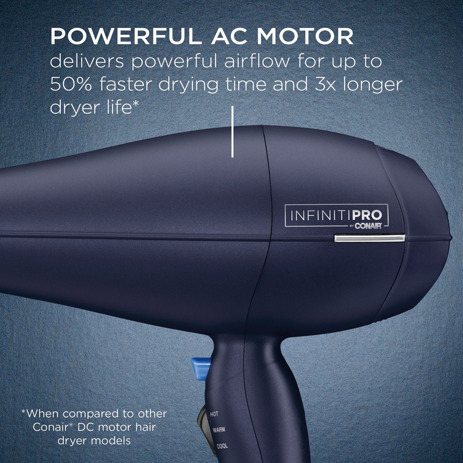 - Professional AC motor delivers powerful airflow for up to 50% faster drying time and 3x longer dryer life