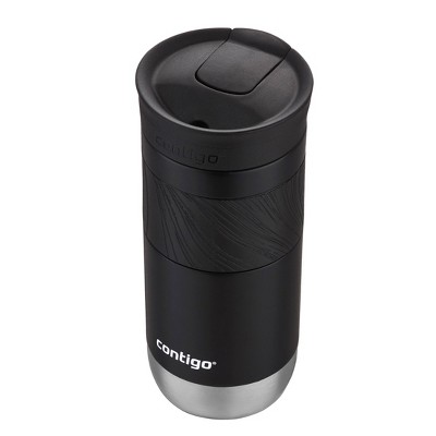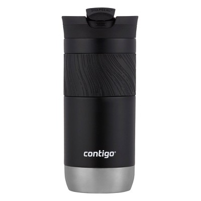 The Contigo SnapSeal Insulated Stainless Steel Travel Mug with Grip, 16 oz., keeps drinks hot up to 6 hours or cold up to 12 thanks to THERMALOCK double-wall vacuum insulation. The one-piece SNAPSEAL lid allows for one-handed drinking with no lids or caps to remove or misplace and is leak-proof when closed. Plus, a subtly textured grip offers a secure hold.