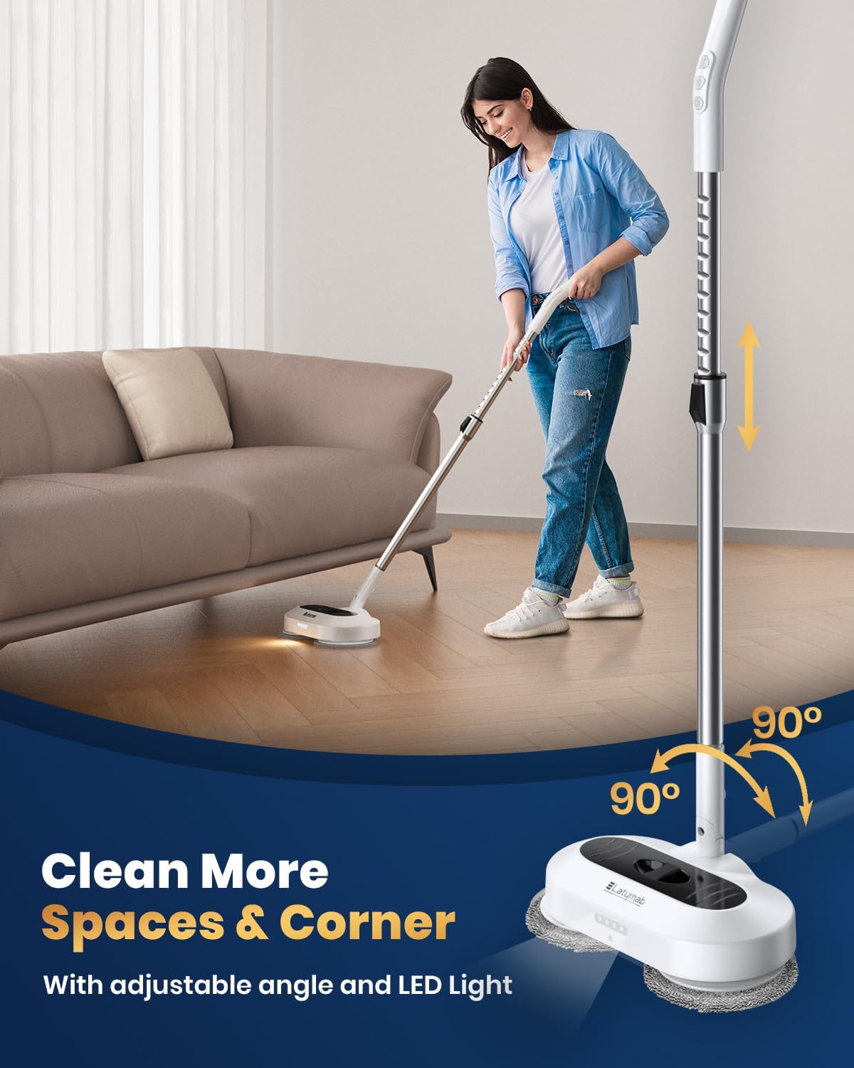 Dual-Motor Power: Features dual motors spinning at up to 160 RPM for powerful cleaning on all floor types. It effectively tackles stubborn stains and dirt, ensuring a spotless floor with minimal effort, even on tough cleaning jobs