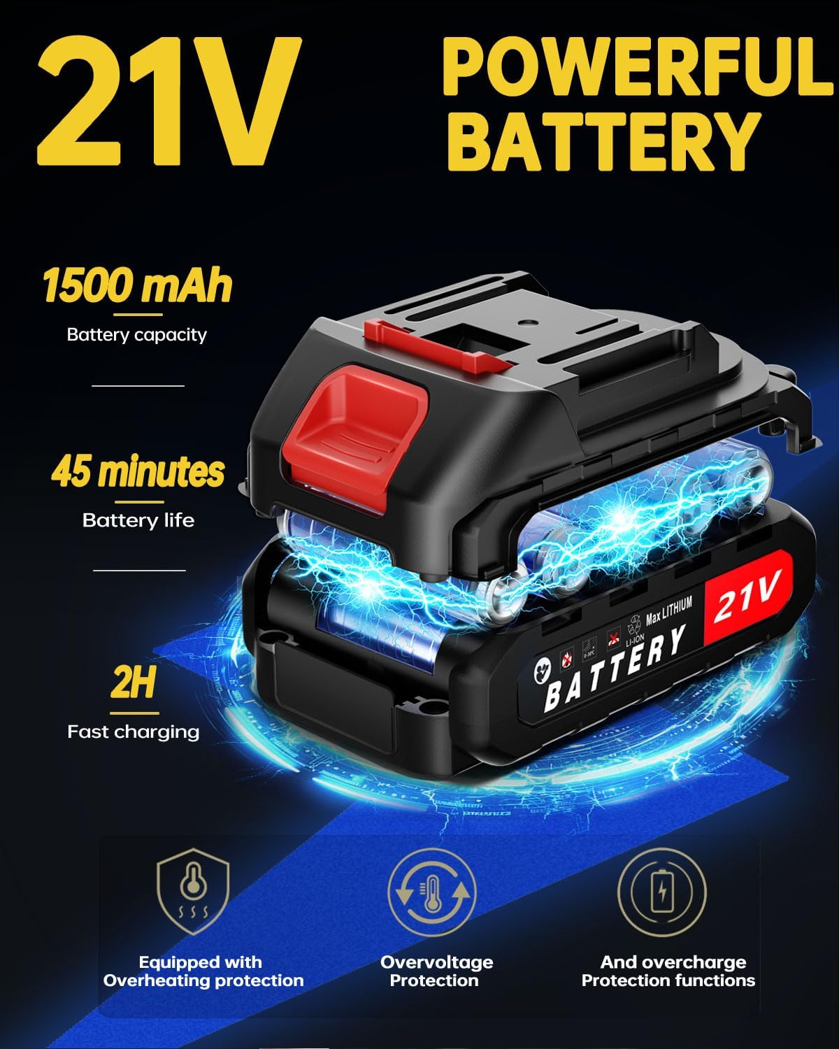 Non-Stop Power & Performance: Finish the job without interruption thanks to two 21V 2000mAh batteries; get up to 90 minutes of total runtime from the 6000RPM motor, making your weekend projects faster and more satisfying