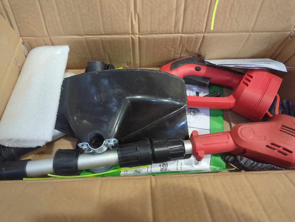 【Safety Lock of Lawn Mower Trimmer】Our garden strimmer with safety lock button to prevent accidental switching on. To switch on the trimmer, the safety button and the switch must be pressed simultaneously. The package include string trimmer, saw blade, metal blade, nylon trimmer wire, Lawn mower baffle, handle, installing tools.