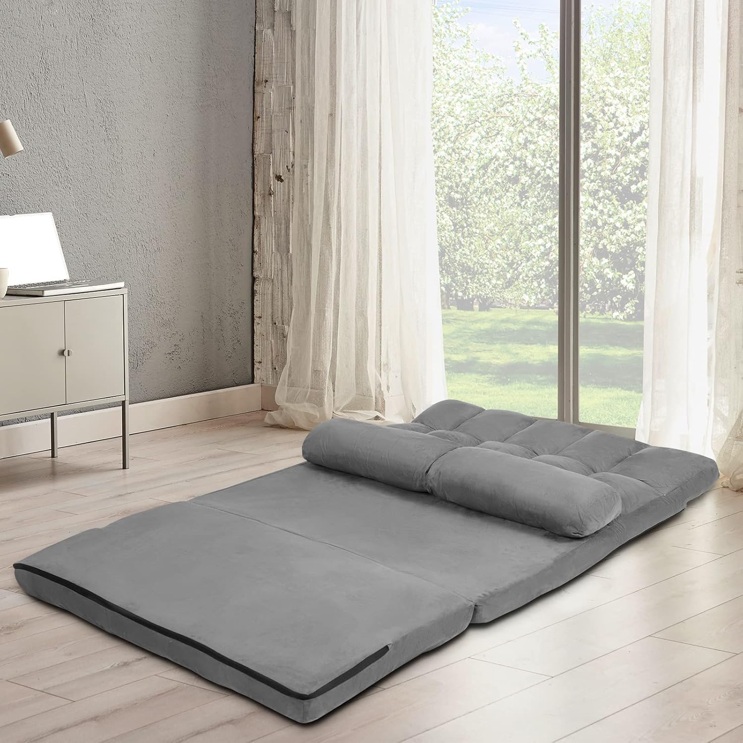 [Comfortable Seating] This floor sofa bed is carpeted with suede fabric for softness and breathability. Filled with the high-density sponge and 2 additional waist pillows, it delivers a comfortable seat and supports pure relaxation.