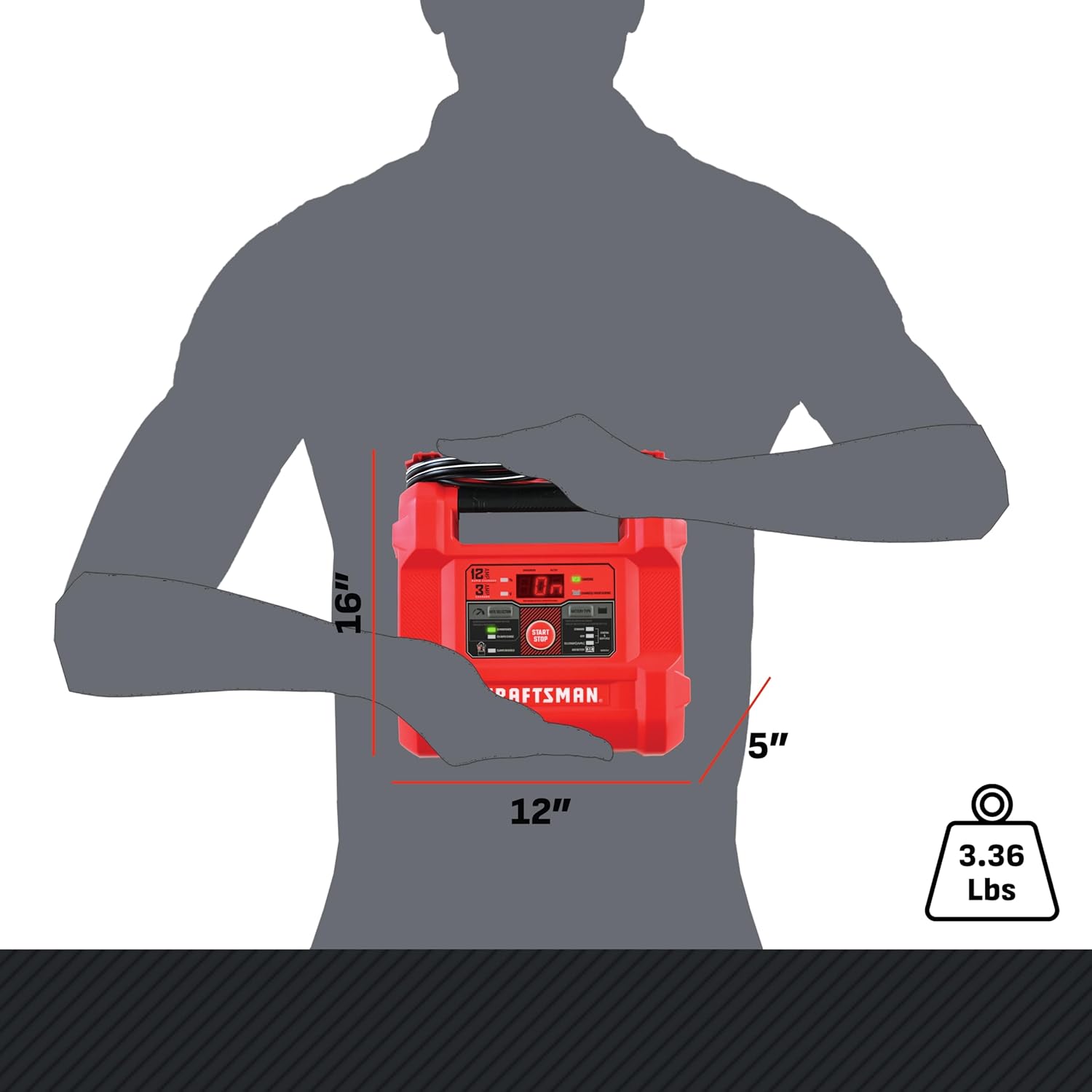 CRAFTSMAN 12A Car Battery Charger and Maintainer, 4-in-1 Solution, Battery Tester, for 6V/12V Power Sport, Automotive, and Marine Batteries, CMXCESM258