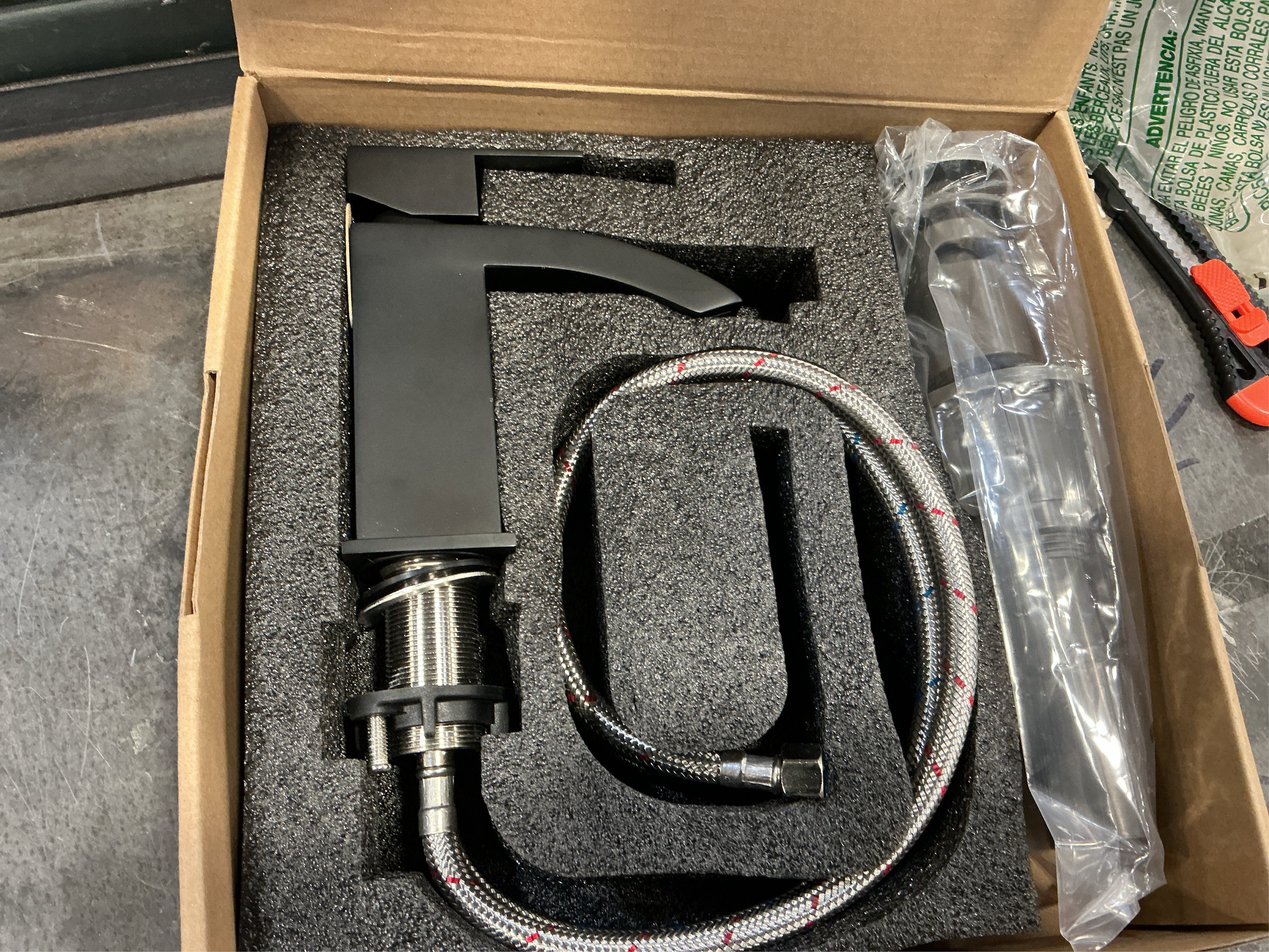 CREA Matte Black Waterfall Bathroom Faucet 1 Hole Single Handle Bathroom Sink Faucet with Pop Up Drain,Stainless Steel RV Vanity Faucet Basin Mixer Tap 3 Hole Plate Water Supply Line