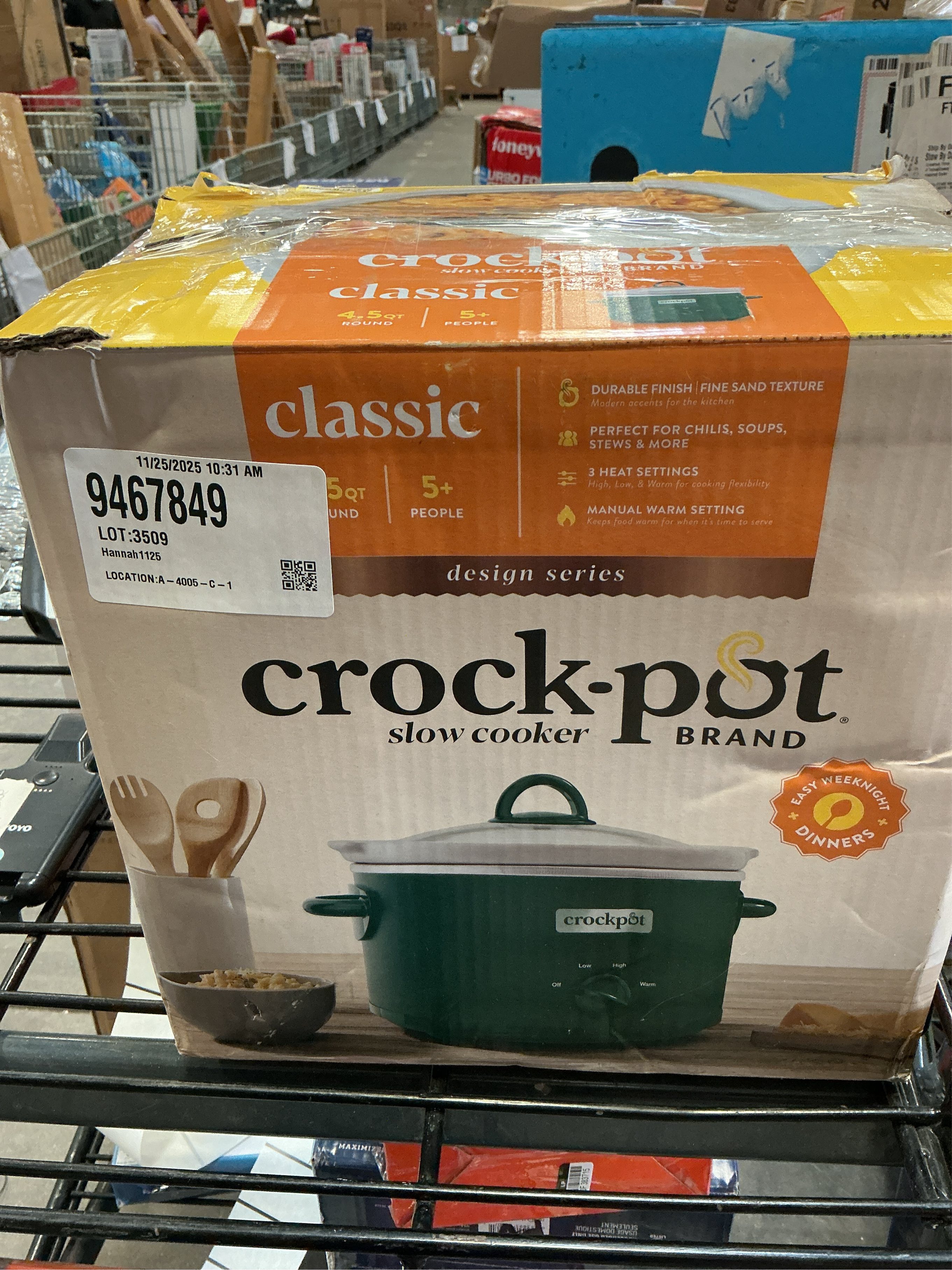 Introducing the newest color in our Crockpot Design Series. With its streamlined silhouette and rich Ponderosa Green color, this Crockpot Design Series manual slow cooker combines modern functionality and sensibility to easily complement your lifestyle and design aesthetic. With its 4.5 quart capacity, it is perfectly sized for feeding 5 people, ideal for small family meals family and weekly meal prep.Three manual cook settings—High, Low, and Warm—provide flexibility for whatever you are cooking. The Warm setting keeps food at the ideal serving temperature until it's time to eat. Cleaning this Crockpot slow cooker is so easy, both the removable stoneware bowl and glass lid are dishwasher safe. The stoneware bowl is also oven safe up to 400°F, giving you the option to crisp foods prior to serving. For busy people who want nutritious home-cooked meals—without spending a lot of time in the kitchen—this slow cooker is the perfect choice. It makes mealtime easier, and looks great on your countertop, too!