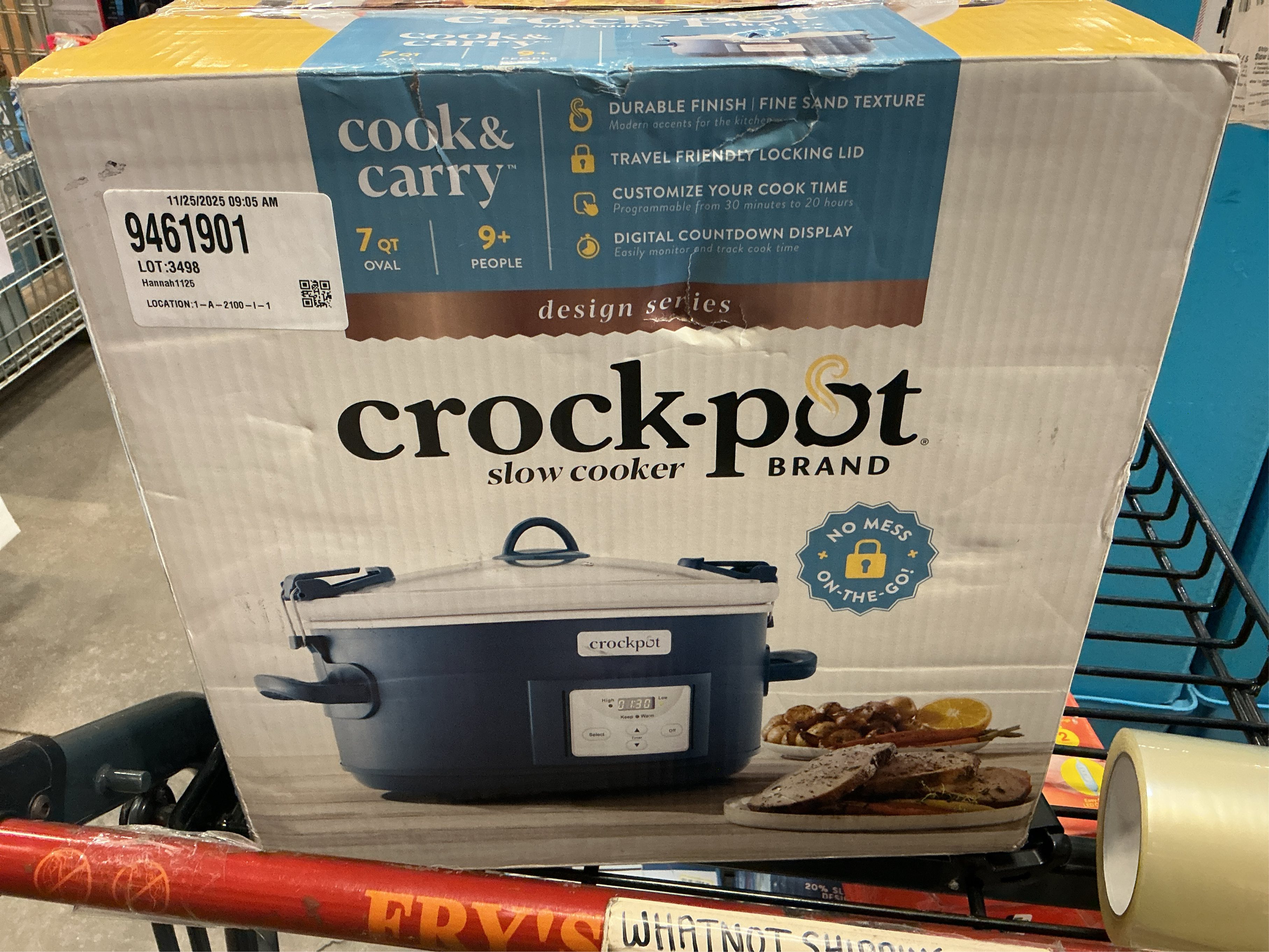 Cook meals on your schedule, and take them on the go! The Crockpot Design Series 7-Quart Cook & Carry Slow Cooker makes it easy. It has a travel-proof locking lid that seals tightly to prevent leaks and spills. Its sturdy handles make lifting and carrying it a breeze, whether on the go or at home.
