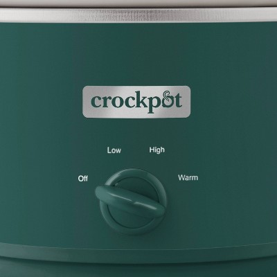 Size 4.5qt Color Green Introducing the newest color in our Crockpot Design Series. With its streamlined silhouette and rich Ponderosa Green color, this Crockpot Design Series manual slow cooker combines modern functionality and sensibility to easily complement your lifestyle and design aesthetic. With its 4.5 quart capacity, it is perfectly sized for feeding 5 people, ideal for small family meals family and weekly meal prep.Three manual cook settings—High, Low, and Warm—provide flexibility for whatever you are cooking. The Warm setting keeps food at the ideal serving temperature until it's time to eat. Cleaning this Crockpot slow cooker is so easy, both the removable stoneware bowl and glass lid are dishwasher safe. The stoneware bowl is also oven safe up to 400°F, giving you the option to crisp foods prior to serving. For busy people who want nutritious home-cooked meals—without spending a lot of time in the kitchen—this slow cooker is the perfect choice. It makes mealtime easier, and looks great on your countertop, too!