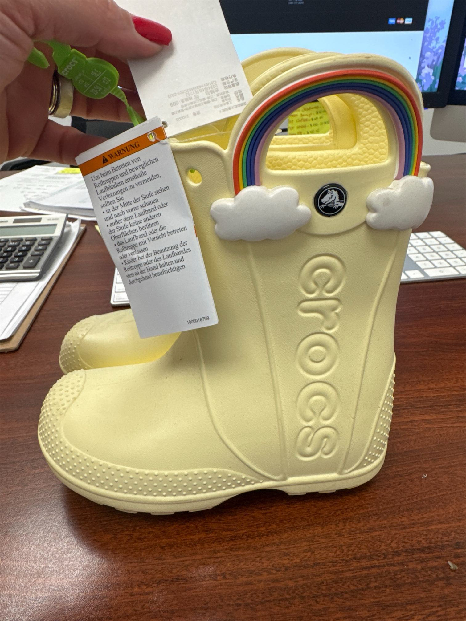 Now kids can enjoy classic Crocs comfort - even on the rainiest days. These Crocs Kids Handle It Rain Boots with a waterproof build keeps puddle-jumping feet cozy and dry. The oversized handles make it easy for kids to take these boots on and off, an