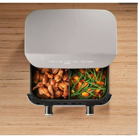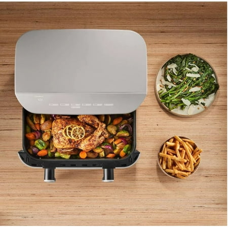 Patented TriZone® Technology: Cook two independent meals or one large meal. XXL 10qt Capacity: Holds over 8.2lbs of food, enough to serve up to 10 people. EverGood™ Ceramic Nonstick Coating: Made without PFAS, PFOA, PTFE, lead, or cadmium for easy food release. Patent Pending TurboCrisp™ Technology: Cooks food 50% faster* for crispy, evenly cooked results. 5 Cooking Presets: Air Fry, Bake, Broil, Reheat, Roast, and Dehydrate for versatile cooking. Sleek Touchscreen Interface: Easily control time, temperature, and cooking modes with a touch. Easy to Clean: Removable crisping tray, basket, and divider are dishwasher-safe.