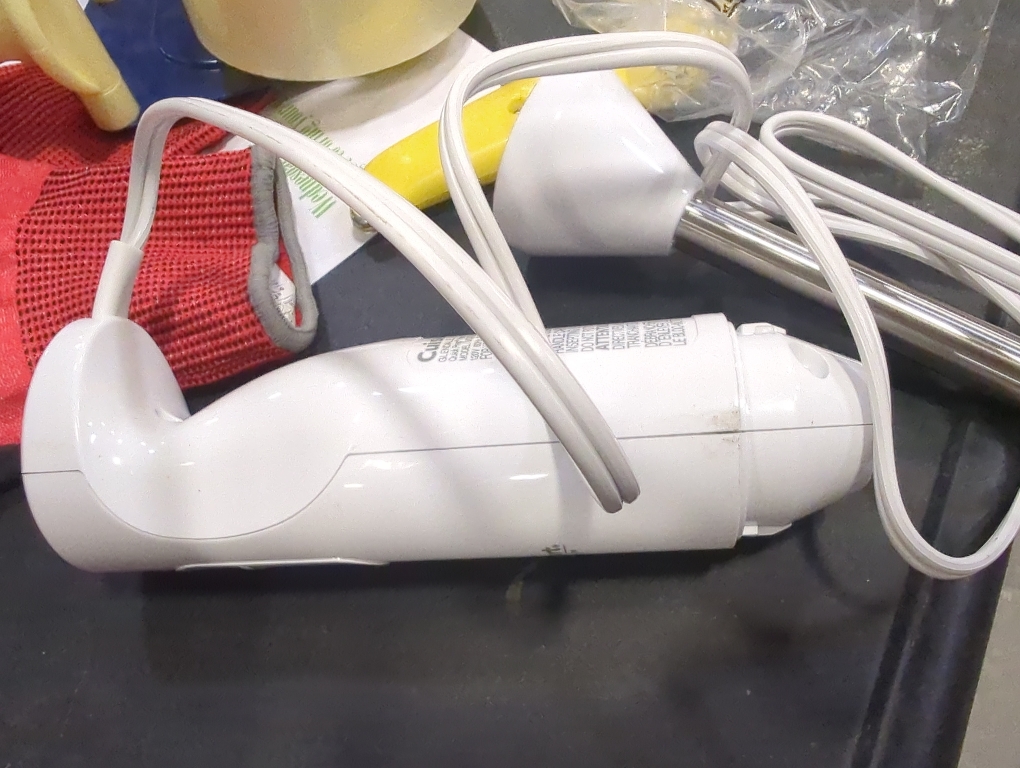 Small Scuff marks Cuisinart puts the power of a standard, full-size blender into a hand blender. A 250-watt DC motor drives this powerful immersion blender that reaches deep to blend right in a pot, bowl or pitcher. It’s the ultimate convenience, with speed, power, and lock/unlock controls right on the handle for easy one-handed operation. The handle is ergonomically designed to let users comfortably blend, and the removable blending shaft and blade are premium stainless steel, built to last!