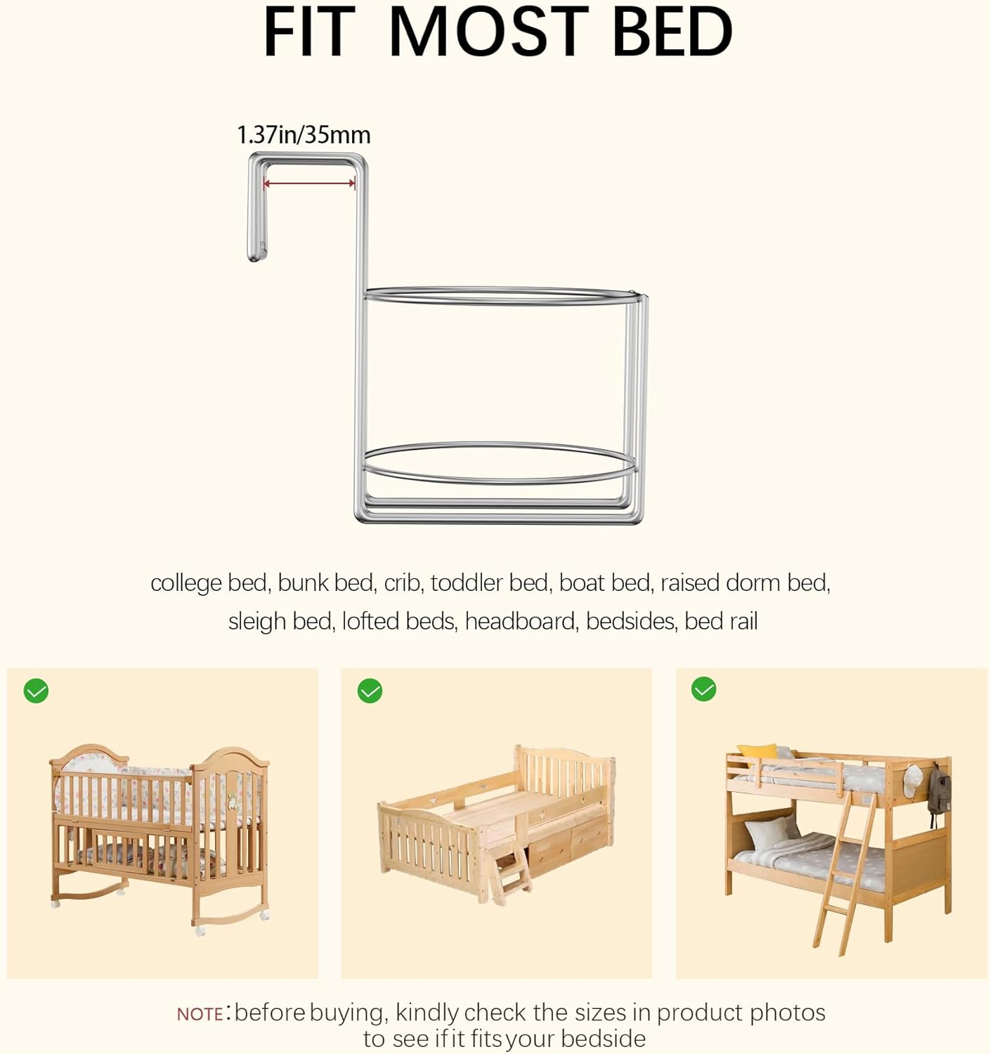 Cup Holder for Bed (Diameter: 4.1IN) Drink Holder Water Bottle/Glass Organizer for Wood Dorm Room Bunk Bed Crib, Metal Toddle Bed,Loft Bedside, Headbed, Car,Office Desk Partition