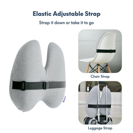 Cushion Lab Extra Dense Lumbar Pillow - Patented Ergonomic Multi-Region Firm Back Support for Lower Back Pain Relief - Lumbar Support Cushion w/Strap for Office Chair, Car, Sofa, Plane - Light Grey