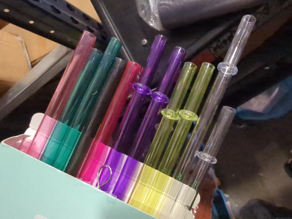 Package: 12 piece clear reusable straws and one cleaning brush with Dakoufish color box