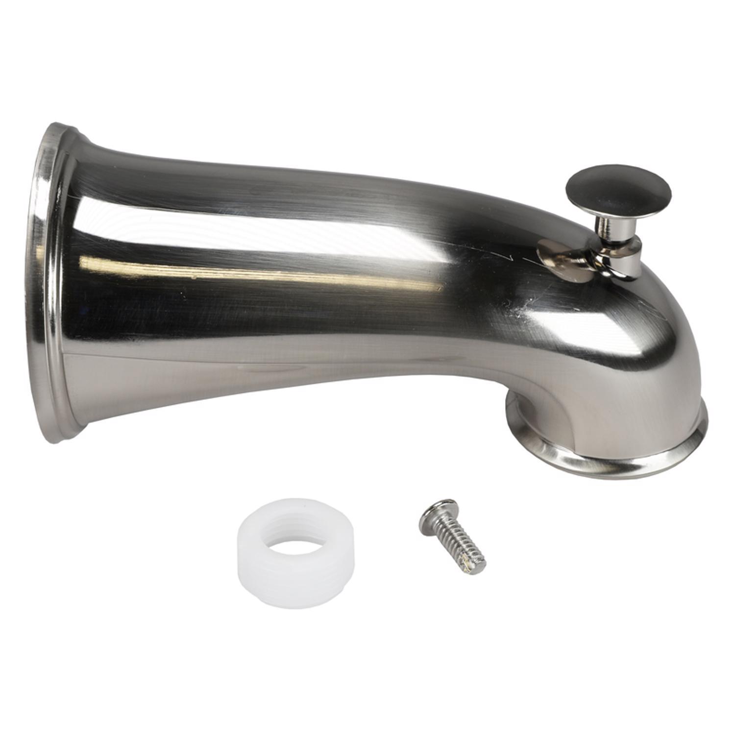 Update your bathroom with the DANCO Tub Spout with Diverter in Brushed Nickel. Old worn out tub spouts have a tendency to erode and crack creating unwanted leaks. Replacing your dirty, dingy tub spout will help upgrade the look of your tub/shower and help prevent leaks which will save water and save you money. This tub spout is constructed from metal for strength and durability in your tub/shower. It features a 5-1/2 in. reach to provide an abundance of clearance space. This tub spout comes complete with adapters for a hassle-free installation.