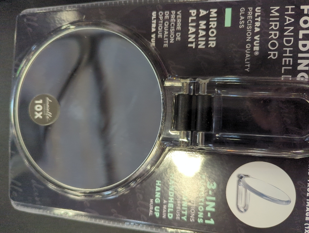 Danielle Creations 5.5-Inch Folding 2-Sided Hand Mirror, 10x Magnification, Acrylic