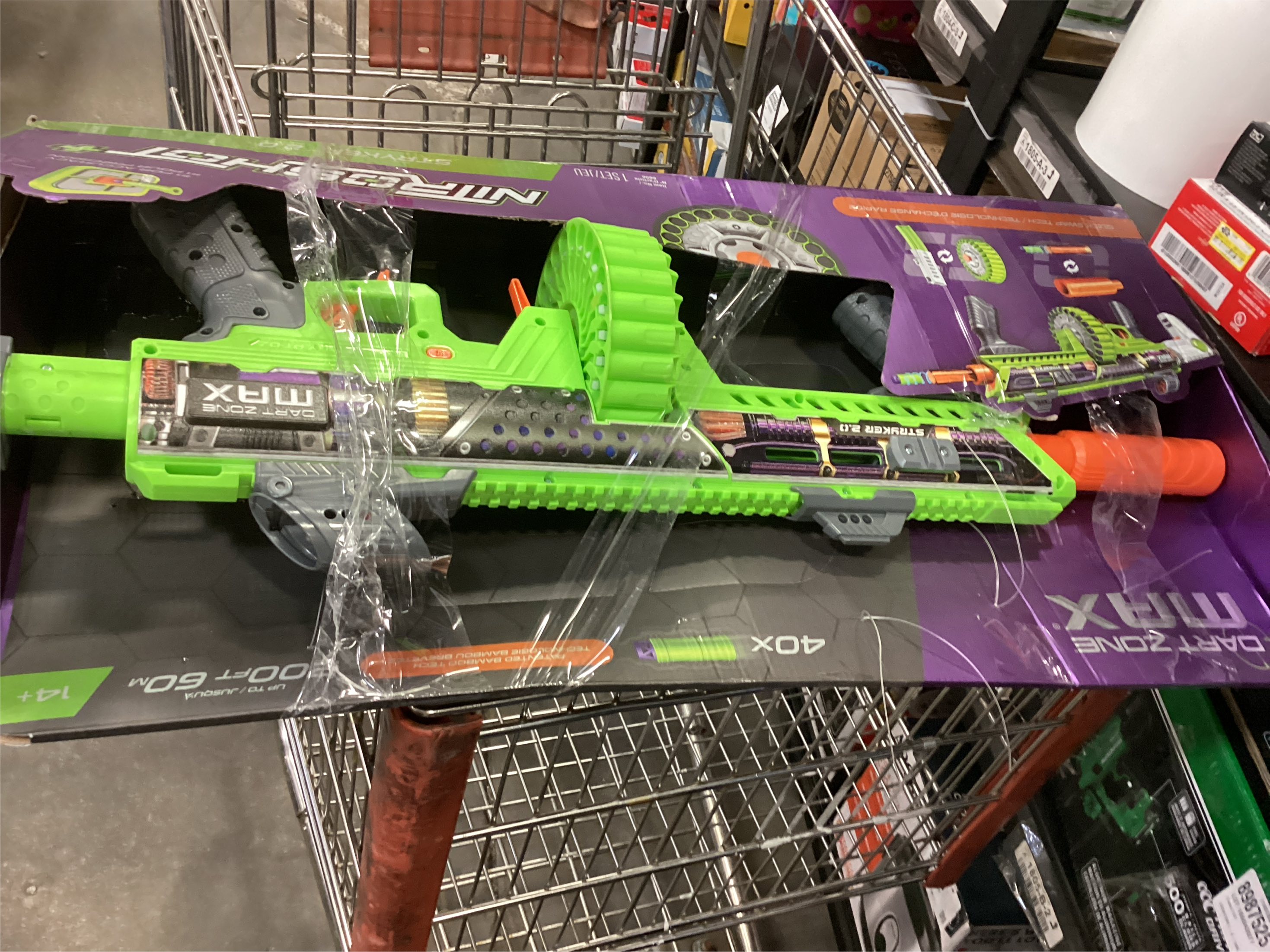 We just took one of your favorite blasters to a whole new level. Introducing the Dart Zone Max Nitroshot Stryker 2.0. This unique blaster set not only comes with top-of-the-line pro features, a 12-round magazine, and NEW Nitroshot foam darts, it also has an all-new half-length drum that shoots darts up to 200 feet. This blaster’s Quick Swap technology allows you to seamlessly switch between mag and drum, or muzzle and scar barrel, for the ultimate foam battle experience. You’re going to be glad you have a 25-round drum to play with because the Stryker 2.0 features slam-fire action. Simply prime the blaster, hold down the trigger, and keep on pumping that priming handle to blast round after round of foam dart fun. Use the Picatinny rail to customize your gameplay with the adjustable scope and sights. Detach the muzzle and swap it for the threaded scar barrel to give your blaster an accuracy boost. The package includes 40 Nitroshot half-length foam darts, featuring Dart Zone’s specialized Bamboo Tech that shoots farther and more accurately than other darts on the market. Hence the tagline… #1 Darts. Period. The full set includes 1 blaster, 40 Nitroshot half-length foam darts, 1 half-length magazine, 1 magazine adapter, 1 drum, 1 pair of protective eyewear, and 1 threaded scar barrel. This blaster is recommended for ages 14 and up, a great choice for older teens and adults who want to play like a pro in their backyard battles. P.S. Don’t throw away the package! It comes with a perforated pop-out target to help you hone your foam blasting skills.