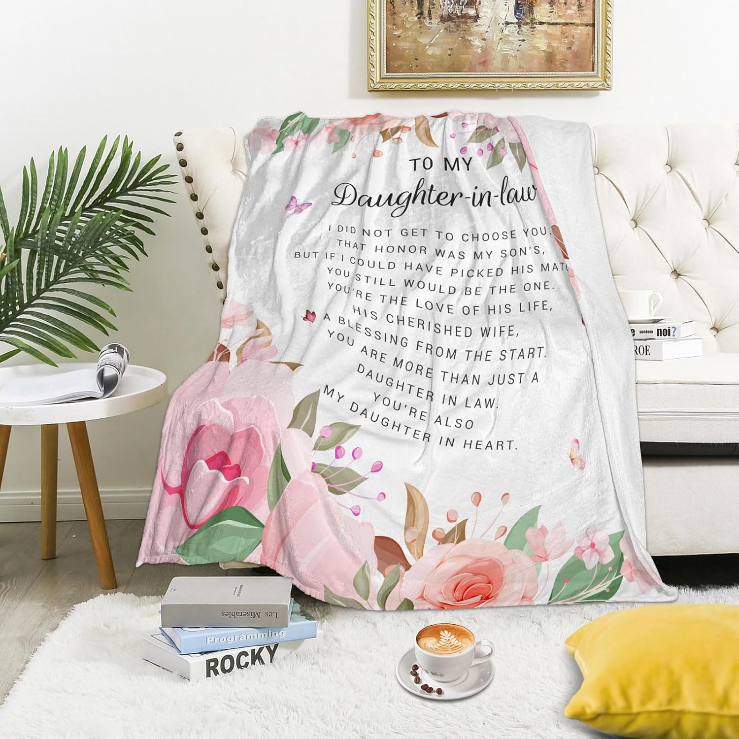 Daughter in Law Gifts Throw Blanket 60"X50", Best Birthday/Wedding Gifts for Future Daughter in Law
