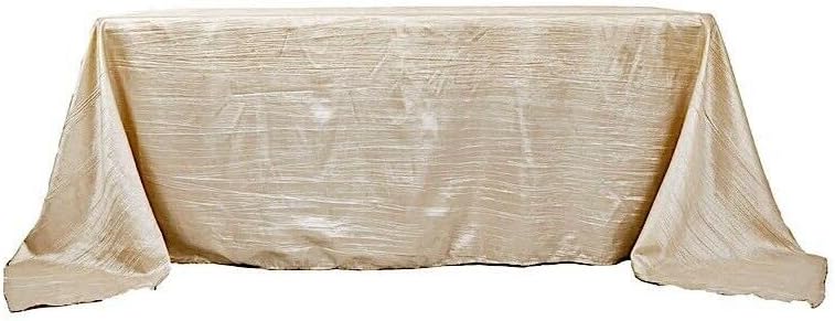 Decoration for All Occasions Beige 90" x 132" Accordion Crinkle Taffeta Rectangle Tablecloth Party Supplies DFAO-1-Z5896