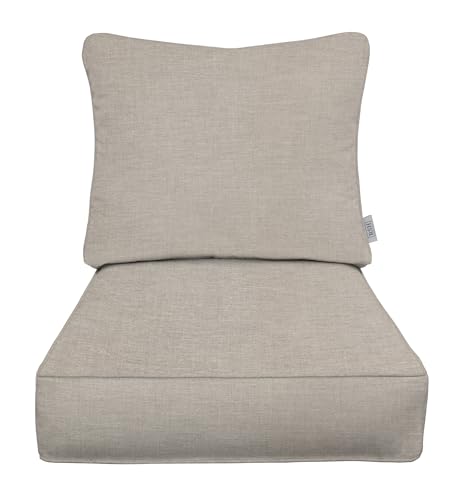 Deep Seating Cushion with Pillow Back | Seat | Water and Fade-Resistant Performance Fabric | Outdoor Chair Cushion Set for Patio Furniture | Cast Silver | Made in US