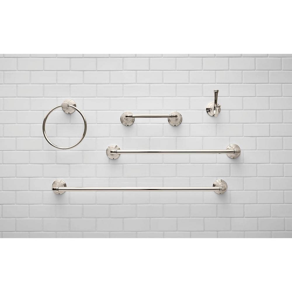 Inspired by the finer points of classic architecture, the Delancey Accessories Collection from American Standard captures the refined elegance of stately columns and sublime details. These enduring designs are available in beautiful, tarnish- and scratch-resistant finishes to complement the entire Delancey Collection. Durable, reliable, quality engineering and construction. Materials of construction: metal construction for durability and long life. Concealed mounting: no exposed set screws. Easy to install. Durable construction. Reliable performance. Finish Family: Polished Nickel. Mount Type: Wall Mounted. Mount Post Shape: Round. Hook Type: J-Hook. Product Length (in.): 4 in. Weight Capacity (lb.): 20 lb. Included: Mounting Hardware.