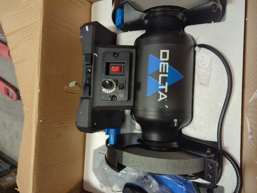 Delta 8-in bench grinder with light features 36 and 60 grit wheels for a variety of grinding operations