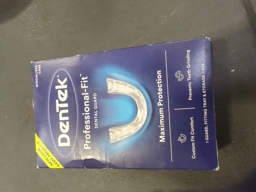 DenTek Professional-Fit Dental Guard fits the front and back teeth and offers custom-fit protection similar to a professionally made mouth guard - for a fraction of the cost. Quickly customize the DenTek Professional-Fit Dental Guard in 3 easy steps. Complete fitting instructions are inside the package. Read all instructions and watch the full video before fitting the DenTek Professional-Fit Dental Guard. All parts are BPA free. Made in the USA, DenTek Professional-Fit Dental Guard is the #1 OTC dental guard brand for nighttime teeth grinding**. Teeth grinding, also known as bruxism, is when a person clenches their jaw and the upper and lower teeth scrape and grind against each other. DenTek Professional-Fit Dental Guard helps to prevent conditions caused by teeth grinding including jaw discomfort, tooth chipping and cracking, and headaches. Go beyond brushing with DenTek! Help preserve and protect your natural teeth for a lifetime with DenTek's innovative dental care products. FSA- and HSA-eligible product in the U.S. **Source: IRI Data Total Units Sold Ending 09.06.20 Multi-Outlet Convenience Store