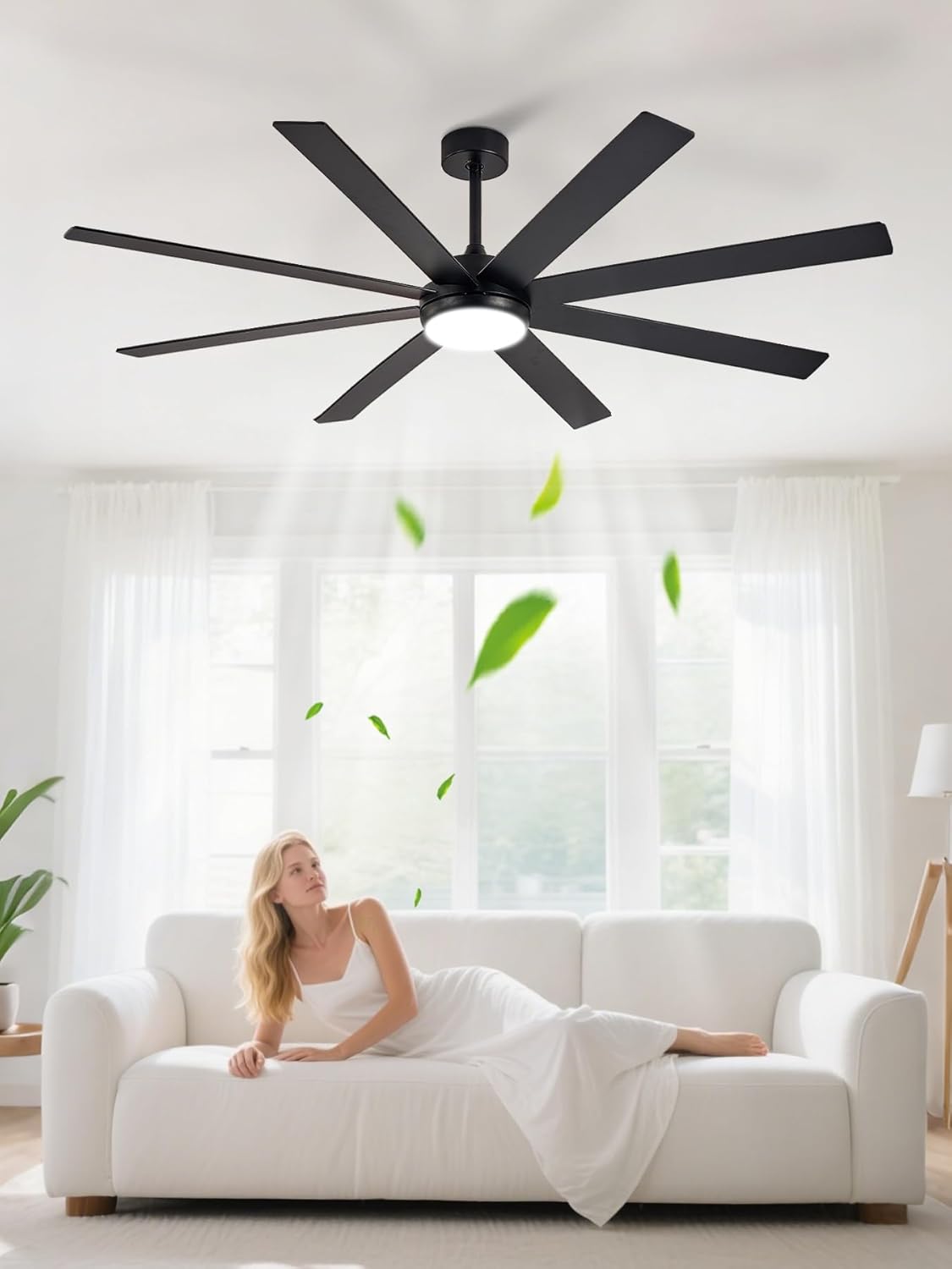 Depuley 66" Ceiling Fans with Lights: Black Indoor/Outdoor Ceiling Fan for Patios Living Room - 8 Blades Dimmable Large Ceiling Fans with Remote APP Control Timer Reversible Quiet DC Motor 6 Speeds