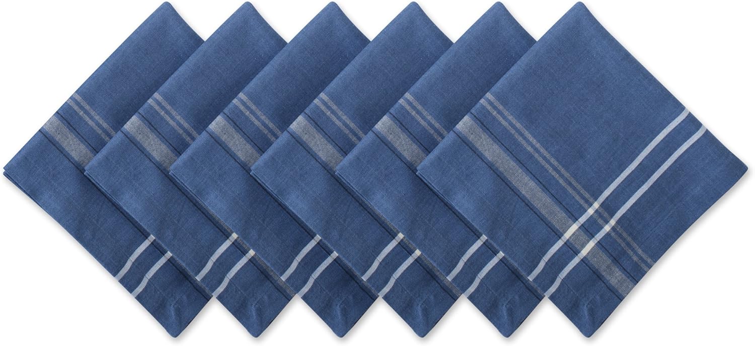 3. DII French Stripe Tabletop Collection Farmhouse Style Dining Table Linen Napkin Set, 20x20, Blue Chambray, 6 Piece