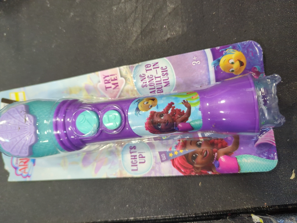 # Pieces In Set: 3Number of Batteries: 2Included: 2 Aaa Battery(ies)Features: Light-Up, Plays MusicCharacter: ArielLearning Skill: MusicPower Source: Battery (included)Recommended Ages: 3 Years And UpMeasurements: 8.03 Height/Inches, 2.14 Length/Inches, 2.04 Width/InchesBase Material: 100% PlasticBattery Size: AaaCare: Wipe CleanCountry of Origin: Imported