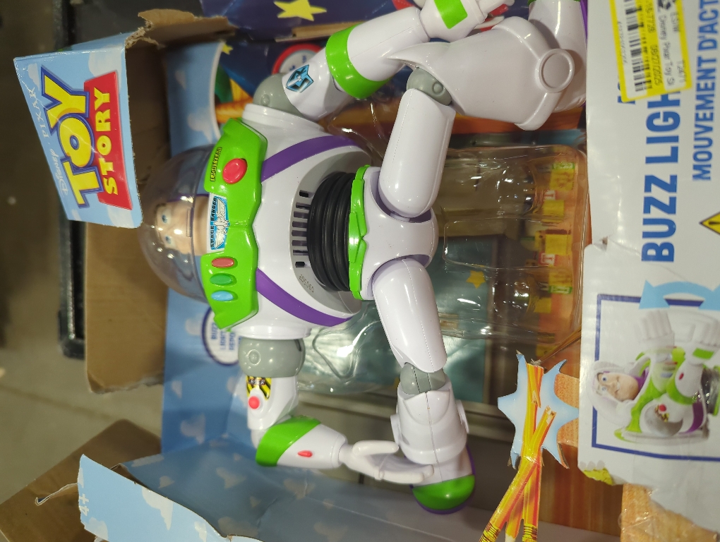 This large, talking, action-chopping buzz light-year will bring big thrills and laughter to fans of the space ranger from Disney and Pixar's toy story. This 10" tall action figure of the spaceman speaks 30 plus movie phrases, like 'to infinity, and beyond' by activating the big red button on his chest. And that's not all he also makes a dynamic chopping action complete with sounds - just press the button on his back with multiple movable joints in addition to the special features, fans will discover interactive fun on a large scale. This buzz light-year figure has a movie-authentic look with his iconic space ranger suit with a helmet that opens and closes. Colors and decorations may vary. WARNING: CHOKING HAZARD-contains small parts, not suitable for children under 3 years. Recommended age - 4 years and up. Includes - 1 action chop buzz light-year figure. Product dimensions - 11" L x 4.5" W x 13" H. Product weight - 1.98 lbs. This large action-chop buzz light-year figure brings home the fun and friendship of Disney and Pixar's toy story, greetings, I am buzz light-year, I come in peace. Push the big red button on the figure's chest to hear 30 plus phrases taken from the toy story films good job, space ranger. Not just a talker, this feature figure also has an impressive karate-style chopping action, activated by the button on his back, and accompanied by a martial arts-worthy yell. At 10" tall with multiple movable joints, this action figure toy is ready to be every kid's best friend and travel along on adventures, we have to stop the zurg bot. With a collection of large scale figures to choose from, some with special features and accessories, kids can enjoy big playtime possibilities, each sold separately and subject to availability. No assembly required. For 1 player. Requires 3 AG13 (LR44) button cell batteries (included). Plastic. Spot Clean. Imported
