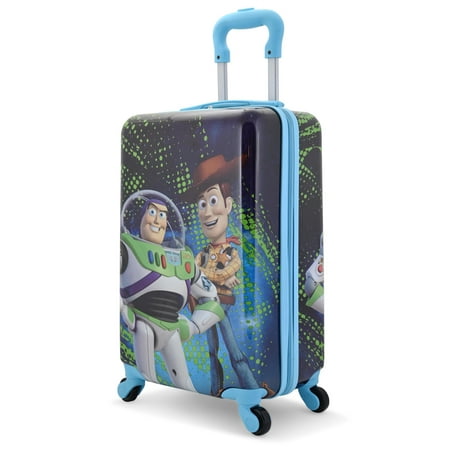 ADORABLE DESIGN: Featuring vibrant Toy Story graphics on BOTH SIDES every young fan will love, making travel fun and stylish. SPACIOUS LUGGAGE: 20" wheeled suitcase provides ample storage for clothes, toys, and travel essentials, perfect for trips and sleepovers. Luggage packing dimensions: 18 Inch x 12 Inch x 8 Inch. Overall dimensions: 20 Inch x 12 Inch x 8 Inch. The weight is approximately 4.65 lbs. TSA Carry-on approved. SMOOTH MANEUVERABILITY: Equipped with four 360 multi-directional spinner wheels for effortless movement and navigation. IDEAL SIZE FOR TRAVEL: Suitable for kids, this children's suitcase fits TSA carry-on luggage requirements. Compact and easy to manage, its designed for effortless travel. DURABLE CONSTRUCTION: Made from high-quality, sturdy materials to withstand the adventures of little travelers while keeping belongings safe.